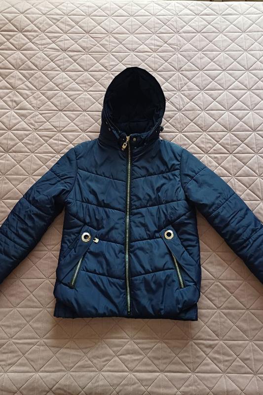 Куртка демисезонная синяя. В хорошем состоянии без нюансов. Капюшон и мех отстегивается. Материал плащевка. Подходит на 13-16 лет, глядя по ребенку. Длина 62 см, длина рукава 64 см, плечи 44 см, под руками 49 см, Капюшон и мех отстегивается