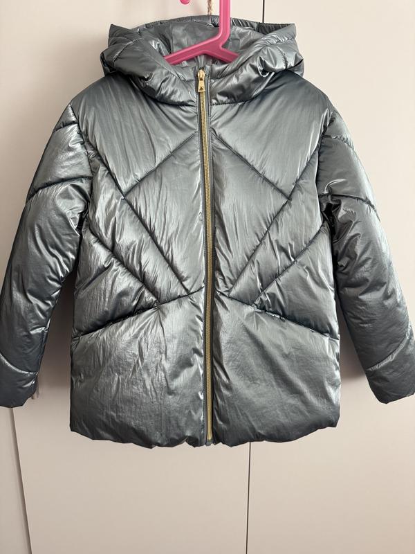 Шикарна куртка такої ж якості. В ній прекрасно все, посадка, зручні кишені, оригінальний колір, золотава фурнітура. Без бірок але не носили і дня, все чекали справжню зиму, яка так і не настала((( живемо під школою, то дитина так і перебилася демісезонною курткою. Верх поліамід, решта поліестер