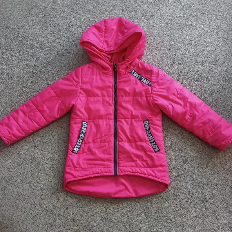 Куртка для девочки, состояние хорошее, застежка работает хорошо, есть карманы, сзади модель удлиненная, капюшон не снимается, на возраст 4-4,5 рючки