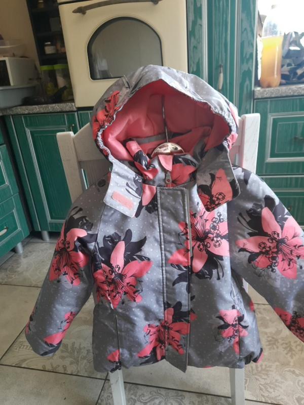 Дышащая курточка в идеальном состоянии с ярким,современным принтом согреет вашу принцессу в холодные,ветренные и снежно-дождевые дни.Так как она не промокает и не продувается ветром.А глубокий капишон на флисовой подкладке приумно согреет ее головку.Светоотражающие элементы на капюшоне и низу куртки предоставят безопасность при хотьбе близи дороги.Оделась на протяжении трех недель, во время путешествия.