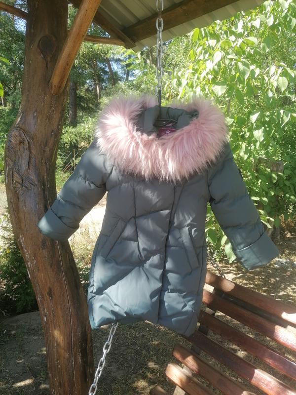 Зимняя куртка на девочку. Подходит на худи) На 5 - 6 лет. Одягали два рази. Стан идеален. Мех на капюшоне снимается. Застежка на молнии и на кнопках.