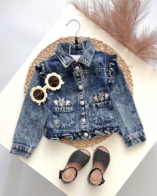 Стильна джинсова куртка з вишивкою на дівчинку 2 років
