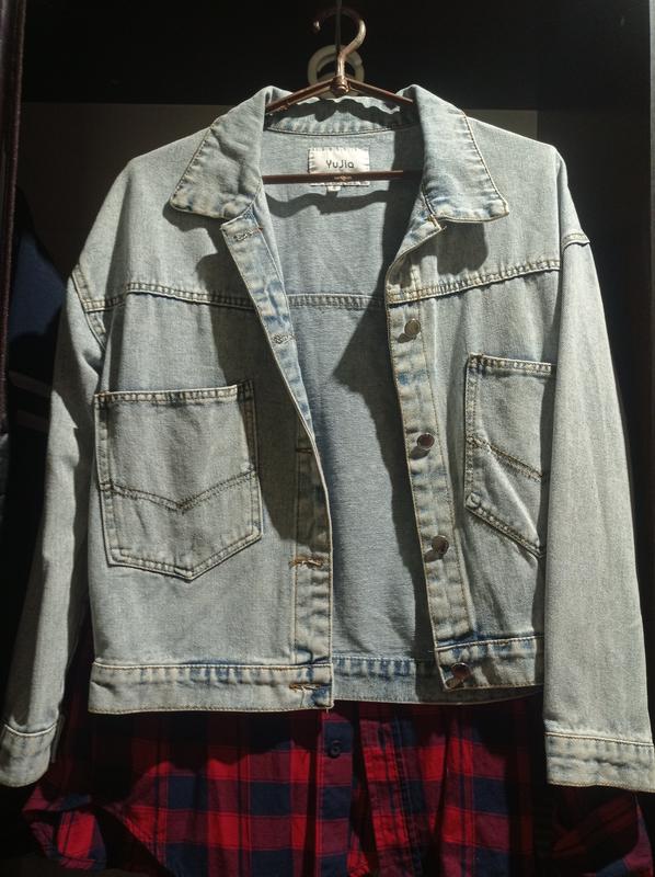 куртка джинсова дитяча, розмір S, зі стразами у вигляді ведмедика