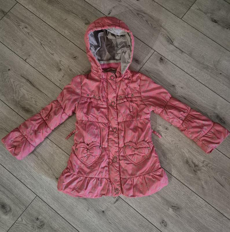 Демисезонная куртка для девочки на 4 года. Ткань верха 100% нейлон, подкладка полиэстер, утеплитель 100% полиэстер.