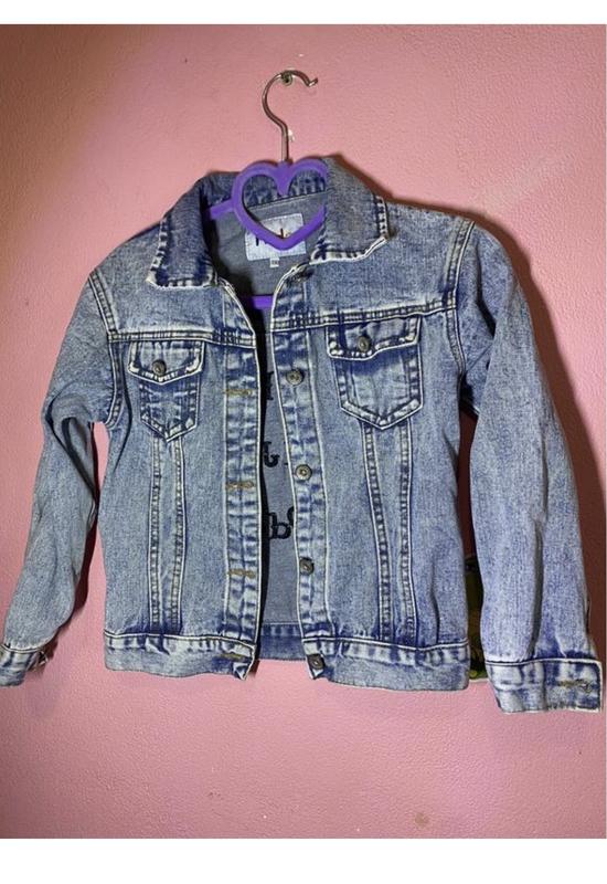 Джинсовка якісна, блакитна з ефектом потертості, цупка. Стан гарний. Має два карманчика. На вік 8-9,5 років. Довжина 45, п/обхват грудей 38, рукав 39 см
