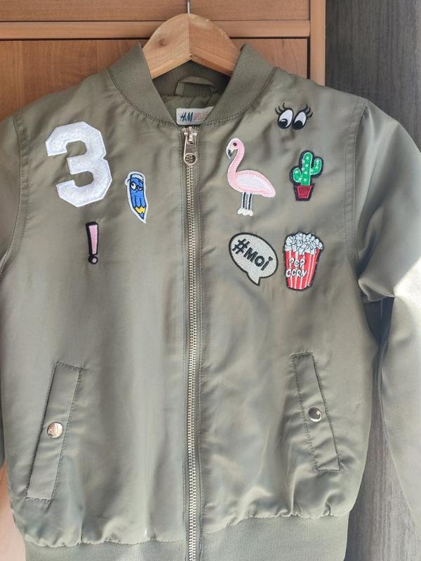Состояние идеальное, модный бомбер для девочки с нашивками, внутри утеплитель.