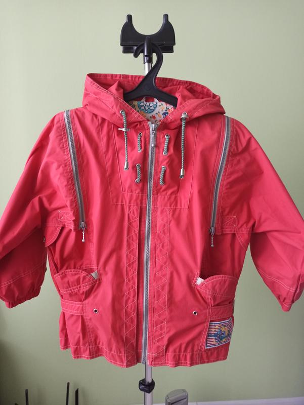 Очень красивая курточка весна/осень для девочки. Очень качественная, в идеальном состоянии. Привезена из Германии. Одевалась несколько раз. Ширина регулируется. Рукава отстёгиваются, можно носить как жилетку. Размеры на фото.