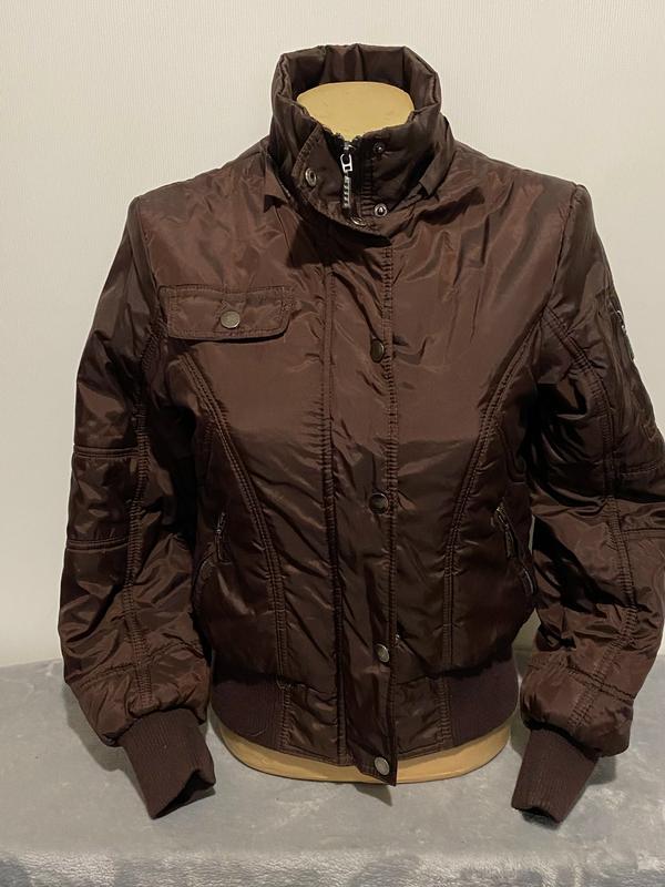 Куртка на девочку 12 лет на синтепоне, застегивается на замок и кнопки, карманы на замках, манжеты на рукавах и внизу куртки, цвет темно коричневый, без капюшона ширина по груди 45см ширина по талии 45см ширина по манжету внизу 38-47см длина 52см длина рукава 58см плечо 11см