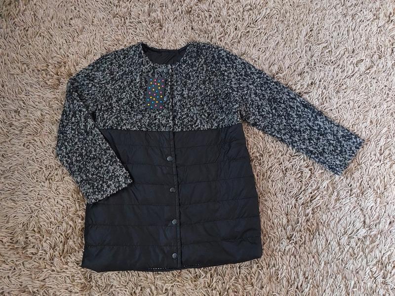 Комбинированная куртка бомбер тонкий слой синтепону два боковых кармана 140 полуобхват по груди 43 см длина 62 см длина рукава 48 см