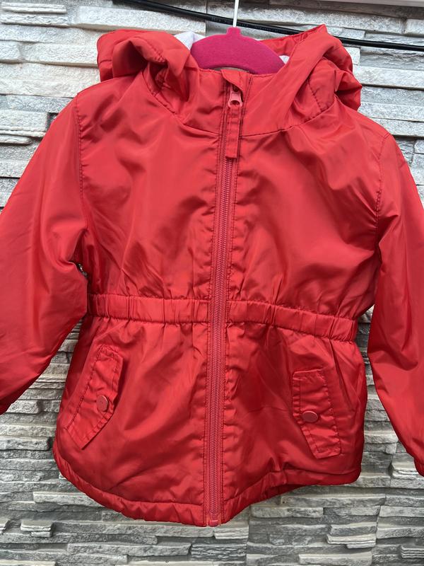 Вітрівка для дівчаток Baby Go 92 розмір З підкладкою, капюшон не відстібається Параметри: Довжина по спинці - 42,5 см В поясі - 28 см (резинка) Рукав - 30,5 Ззаду є дефект - пляма (в прикріплених фото)