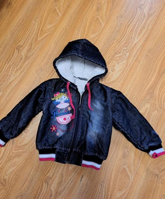 Куртка джинсовка на меху идёт как кофта толстовка на 2-3года Новая Длина 34 ПОГ 32 Рукав от плеча 34 Плечи 23