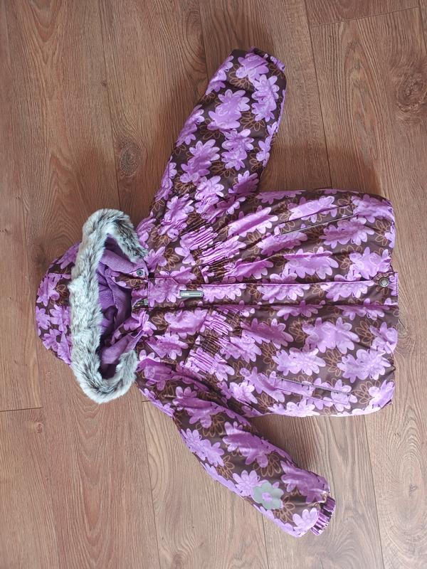 Детская зимняя куртка, в красивом состоянии, без нюансов, все замки рабочие. Длина по спине - 45 см, Ширина по грудям - 40 см, Длина рукава от воротника (реглан) - 45 см. Присборенное по спине, внешние карманы, съемный капюшон (мех НЕ отстегивается).