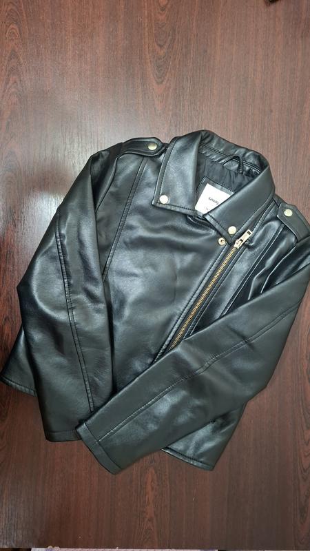Куртка-косуха из экокожи. В хорошем состоянии. Є маленький нюанс, видно на фото. При носке не заметно. Размер 134, отлично буэ от 122. Замеры: длина по спинке - 41см; Плечи- 30см; Рукав- 47 см; ПОГ - 38см.