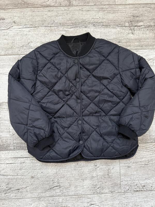В ідеальному стані стьоганий бомбер відомого бренду, не збитий. Легкий , фасон оверсайз. Розмір 7 р, можна і на 6 за рахунок резинок на рукавах буде добре. Заміри: Довжина : спереду 47, позаду 49 Пог. 43 Рукав від плеча 42 Відправлю Укр поштою або новою поштою після часткової, або повної передплати