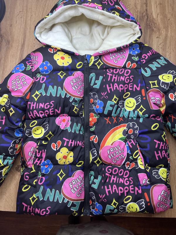 Куртка на синтепоні,спинка груди капюшон утеплена флісовою підкладкою.Сезон осінь,холодна весна . Довжина 46 см Довжина рукава від шиї 50 см Напів обхват грудей 44 см