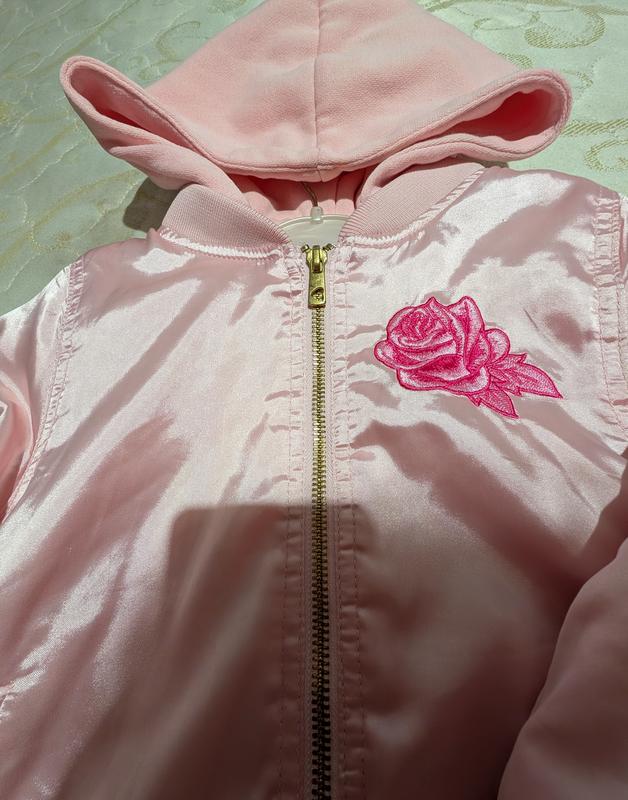 Мега стильнячий бомбер для вашей красавицы от известного бренда H&M, капюшон снимается, нежно розового цвета с ярким акцентом. на возраст 6-7 лет заміри надам,пишіть есть небольшие нюансы,вказала на двух последних фото (ледь заметная затяжка и пятно на манжете,думываю можно отыстить)