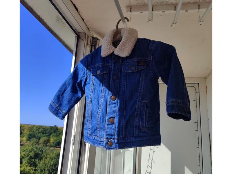 Детская джинсовая курточка на возраст 1.5 - 2 года на рост - 88 - 92 см Длина 34 Ширина 30 Длина рукава 28 см. Состояние новой вещи, одевали пари раз