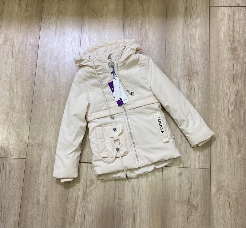 Куртки для дівчаток демісезонні. Ніжно молочного кольору. Капішон не відстібається. Дуже гарно виглядають. Підкладка хлопок. Якість чудова. Розміри 104 , 110 РОЗМІР 104 - довжина по спинці 51 см (перед коротший на 3 см), довжина рукава від плеч.шву 41 см, плечі 29 см, напівобхват грудей 33 см РОЗМІР 110 - довжина по спинці 52 см (перед коротший на 3 см), довжина рукава від плеч.шву 44 см, плечі 30 см, напівобхват грудей 34 см