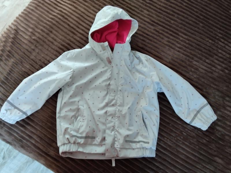Удобная куртка дождевик, утепленная флисом. Неубиваемая, светлая, но несмотря на то, не пачкается.