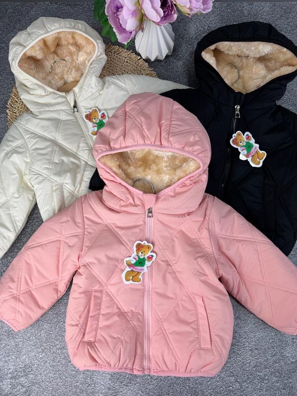 В наявності ✨✨✨ Стильна демісезонна куртка 😍 Верх - плащівка Утеплювач -синтепон .Підкладка -хутро . На блискавці,має 2 кишені ✅ Якісна та практична 90 - довжина 36 см, шир 33 см, рукав 36 см(3 шт) 100 - довжина 39 см, шир 35 см, рукав 39 см(3 шт) 110 - довжина 41 см, шир 37 см, рукав 41 см(2 шт) 120 - довжина 44 см, шир 40 см, рукав 45 см(4 шт) 130 - довжина 47 см, шир 42 см, рукав 48 см(2 шт) замір рукава від капішона