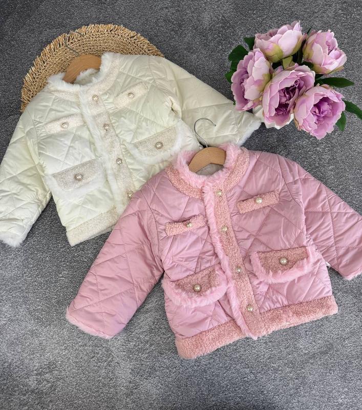 Стильна демісезонна куртка Підійде на холодну осінь Верх - плащівка Утеплювач синтапон Підкладка стьобний нейлон . Красива ,декорована хутром барашек і гарними ґудзиками 80 - довжина 36 см, шир 34 см, рукав 34 см. 90 - довжина 38 см, шир 36 см, рукав 36 см. 100 - довжина 40 см, шир 38 см, рукав 38 см. 110 - довжина 42 см, шир 39 см, рукав 40 см. замір рукава від капішона