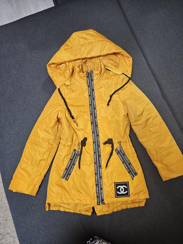 Цвет желто-оранжевый Капюшон отстегивается Пояс на затяжках Есть карманы. На левом рукаве есть пятна-не пробовали выводить-дленькая выросла.-ост. два фото Укрпочта или Новая Повна передплата на карту Замеры сделать.