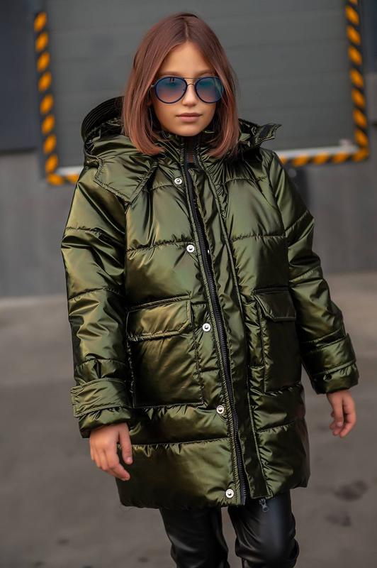 Ткань – высокое качество плотная, зимняя плащевка с водостойким покрытием (защищает от ветра, воды и холода, а также устойчив к загрязнению), наполнитель силикон 250, подкладка флис, сверху на рукавах дополнительные застежки, защищает от попадания снега! Капюшон на застежках. Застегивается на молнию, что скрывается под планкой на кнопках. Цвет-хаки