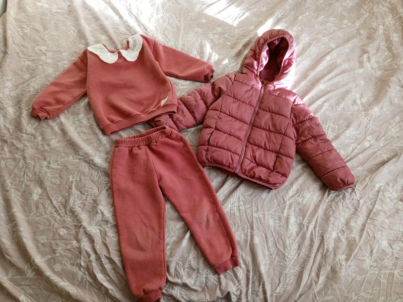 Стан бу куртка демисезон костюм не кашлатится, трехнить на флисе продается комплектом по биркам на 104 рост, но лучше 98.