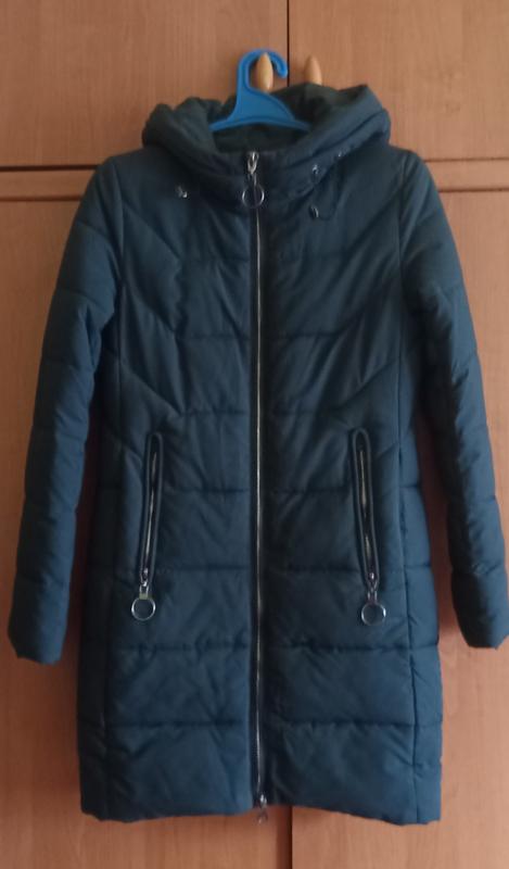 куртка зимняя, темно-зеленая, длина изделия 80 см., длина рукава 60см, на талию 80 см.