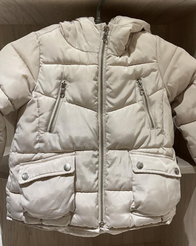 Тепла куртка Zara на 5 років, має збитий синтепон в деяких місцях і плямки - фото
