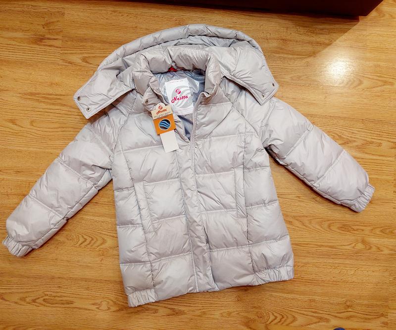 Зимняя куртка Nestta Nora 10 р. 146 см серая Длина 69 см Ширина 50 см Рукав от шеи 68 см Термоподкладка Omnie Heat, утеплитель - биопух, капюшон снимается. Производитель Украина