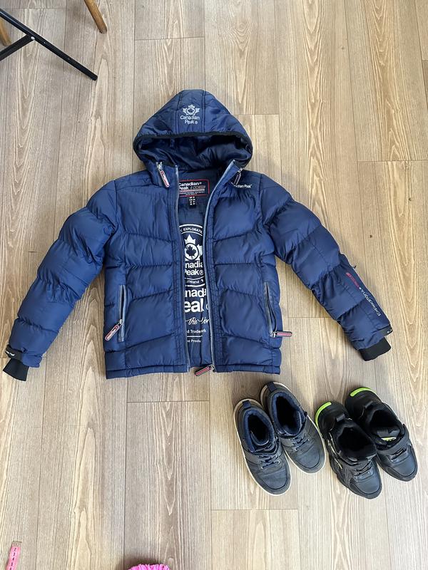 Демісезонна тепла куртка на хлопчика 8 років 128-134 р . На холодну осінь весну ( теплу зиму ). Не працює один замок , и трошки зашито на рукаві , вживу не дуже видно це , заміри на фото :рукав з манжетом 55-56 см длина 55 см Ціна 350 грн (шапка в подарунок )