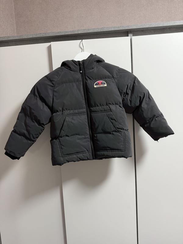 Дуже гарна курточка, тепла на дівчинку у розмірі 4/5 років 110 см, нереально переливається у вечірній період, є незначні недоліки, але при бажанні їх можливо виправити