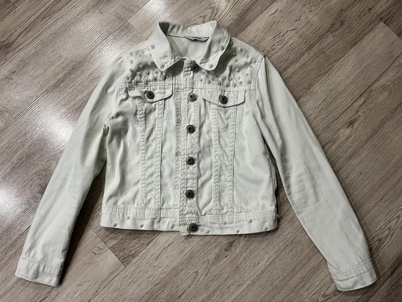 Стильна куртка прикрашена перлинами. На дитину 8-9 років. Довжина 39, рукав 49, ширина 39.