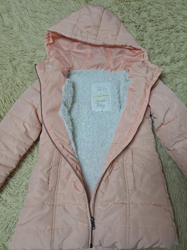 куртка легкая, очень нежного персикового цвета. все целое. длина рукава 39см, куртки полностью 52см