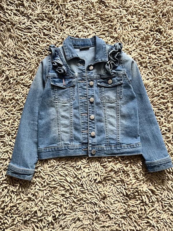Куртка джинсова для дівчинки, дуже стильна з рюшами на плечах. В чудовому стані. Довжина- 45см Ширина- 38см Рукав- 48см Плечі- 30см Дивіться ще інші мої оголошення!🌹 ‼️Більше знижки при покупці від двох речей‼️🛍