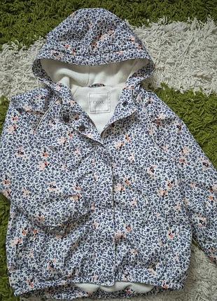 Легка демісезонна куртка на флісі. Дуже зручна. На замок + заклепки. Спереду 2 кишеньки. Є капюшон. Стан близький до ідеального, можливі незначні ознаки носіння. Без дефектів. Розмір по бірці 104. Підійде на 3-4 роки. Орієнтуйтеся на заміри. Склад: 100% поліестер Заміри: довжина: 44 см спереду, 47 см ззаду, ПО грудей: 37, рукав від горловини: 45 см