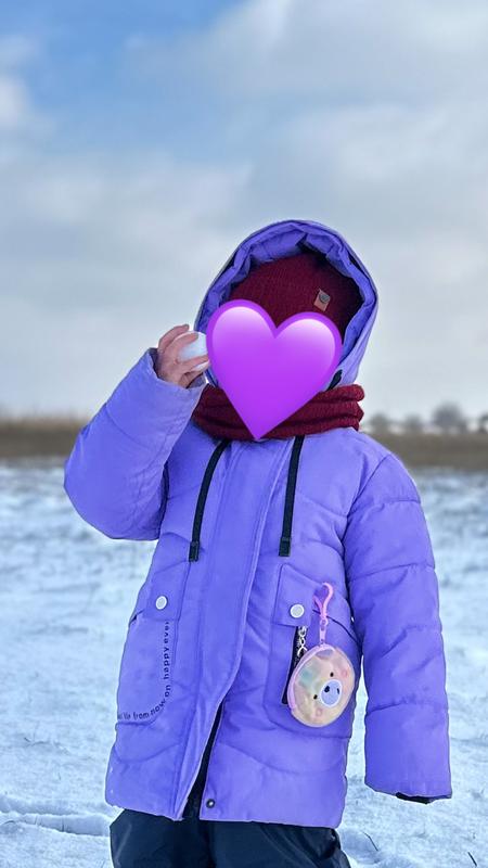 Куртка для дівчинки, зимова, на 98см, але я б взяла на зріст 86(маломірить) дуже тепла, матеріал щось типу холлофайбера. Довжина рукава - 40см. Довжина виробу - 48см.