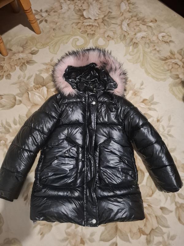 Куртка зимняя для девочки на рост 9-10 лет. Очень теплая и классная все работает, капюшон отщегрывается. На рукавах манжеты. Замеры: Длина куртки-66 Ширина под руками-45 Рукав длина-50 Внутренний шов рукава-38
