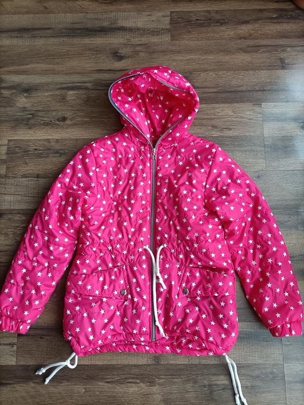длина спереди -53 спина -57, ПОГ-39, ширина низа -43, регулируется шнурком, рукав -50/38, плечи -36. 100% polyester. куртка легкая, очень удобная, на теплую осень - весну. состояние очень хорошее. пятен зацепок нет. отправка после оплаты. новая почта укр почта