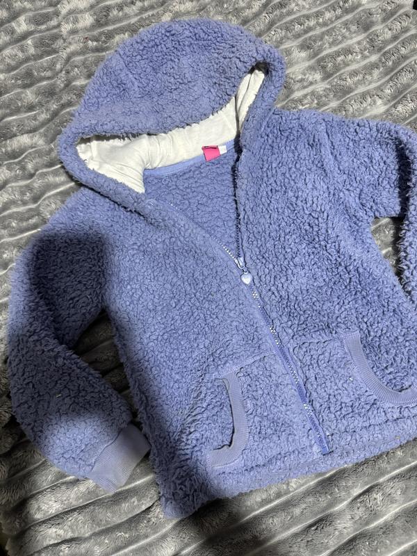Хутряна кофта синя з капюшоном, розмір 116, б/в з дефектами