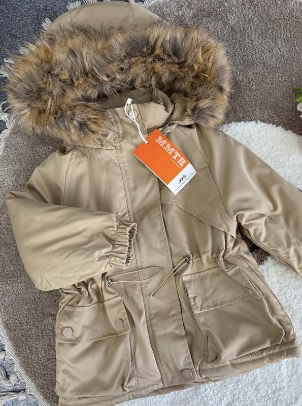 Верх - плащівка Утеплювач- синтапон Підкладка -хутро . На блискавці та кнопках ,має 2 кишені Якісна ,тепла та практична 100 /xxs- довжина 44 см, шир 41 см, рукав 41 см. 110/xs - довжина 47 см, шир 43 см, рукав 44 см. 120/s - довжина 50 см, шир 45 см, рукав 47 см. 140/l - довжина 57 см, шир 48 см, рукав 54 см. замір рукава від капішона