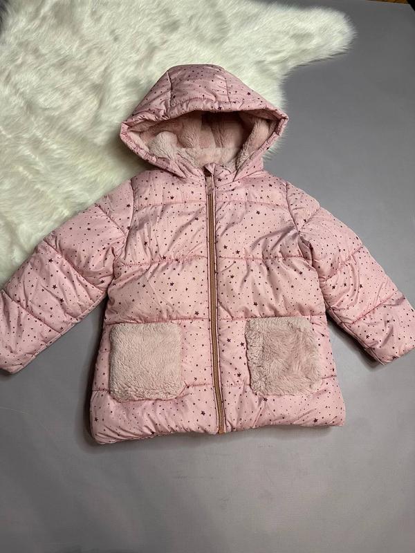 Куртка зимова тепла Стан: гарний Є нюанс (на останньому фото) Розмір: 104 Від плеча до плеча 29 Напівобхват груди 39 Рукав 36 см Довжина по спинці 46