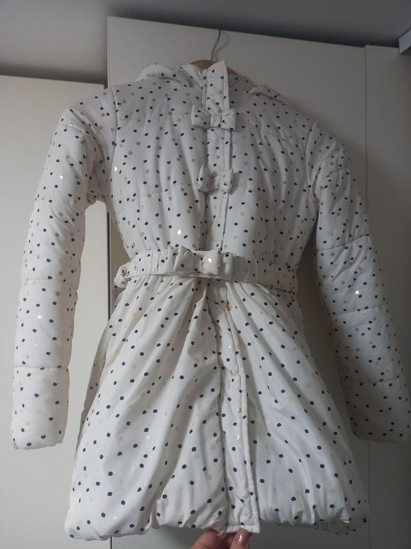 Теплая курточка на девочку 10–11 лет (LC Waikiki) Мягкая, уютная и очень красивая курточка в горошек 🎀 Имеет приятную флисовую подкладку, капюшон и пояс с бантиком. Стан хороший. Есть несколько небольших пятен (показано на фото), поэтому цена занижена. Курточку нужно постирать – общий вид великолепен 💫 📏 Размер: 10–11 лет (140–146 см) 💯 Теплая, легкая, комфортная