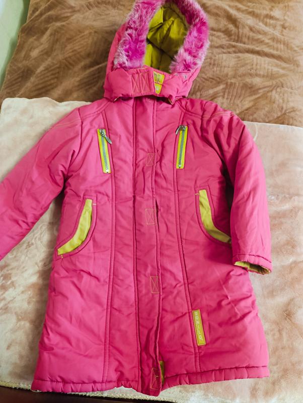Куртка- пальто на девочку, яркое, красивое, теплое, утеплитель халафайбер, замеры: пол.г.-,33 длина изделия-63,длина рукава-40 Размер -110