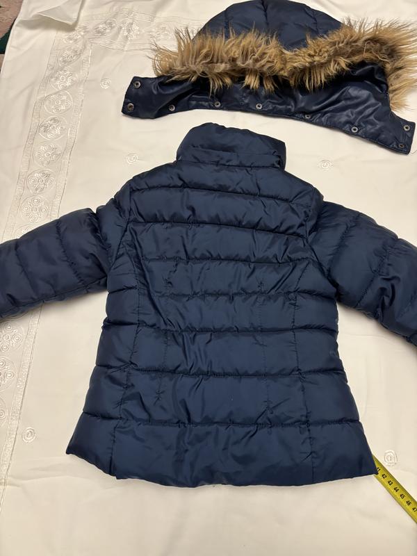 Дитяча синтепонова куртка для дівчинки! З капюшоном! На теплій флісовій підкладці! На теплу зиму - холодну осінь! Без дір , плям та недоліків! Фурнітура у відмінному стані ! Заміри на фото !