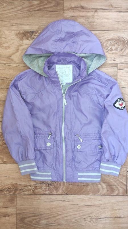 Фиолетовая курточка ветровка на трикотажной подкладке 116см длина от плеча 45см, плечи 37см,рукав от шва-439см,ширина 38см