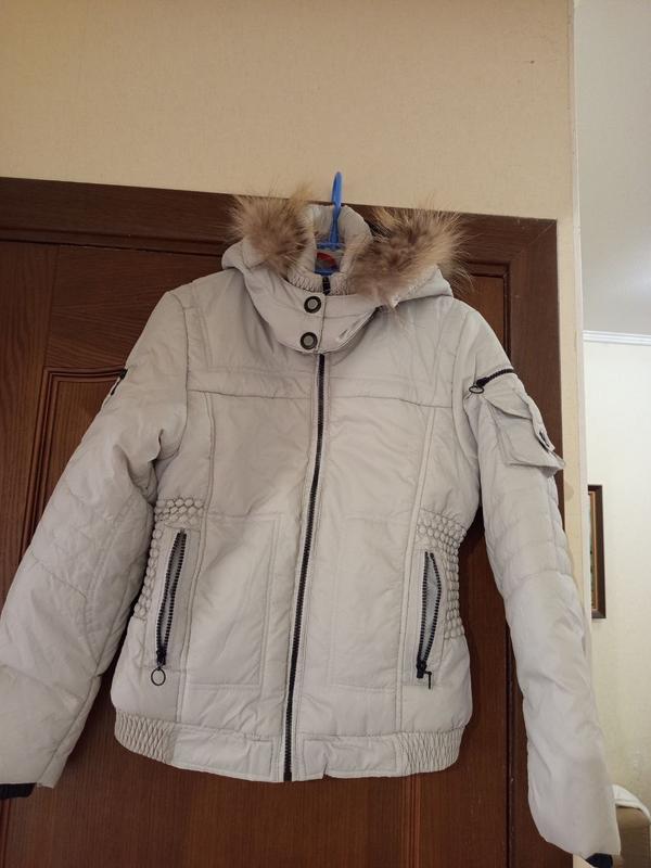 Куртка для дівчинки весна-осінь, капюшон відстібається, з натуральним хутром, на зріст 158 см, ПОГ 43 см, довжина 57 см, довжина рукава від плечового шва 57 см, від шиї 67 см