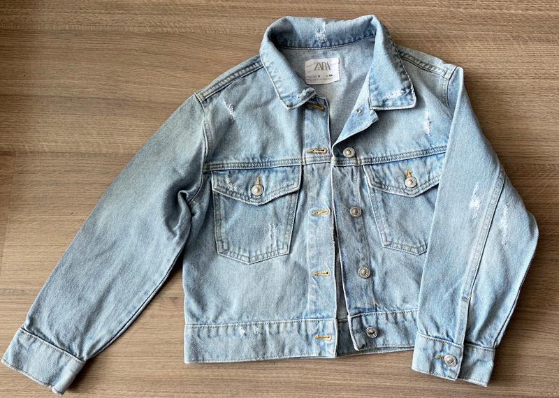 Джинсовая куртка ZARA для девочки 7-8 лет, 128 размер. В идеальном состоянии. Ширина 42 см, длина 44 см, длина рукава от воротничка 58 см