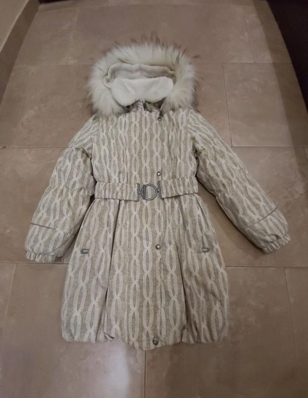 Зимнее, легкое пальто фирмы Lenne Пальто в очень хорошем состоянии, единственный нюанс - отломался язычок на собачке, вместо него кольцо. Красиво смотрится на ребенке. Длина пальто 73 см, длина рукава от плеча 51 см, плечо 11 см.